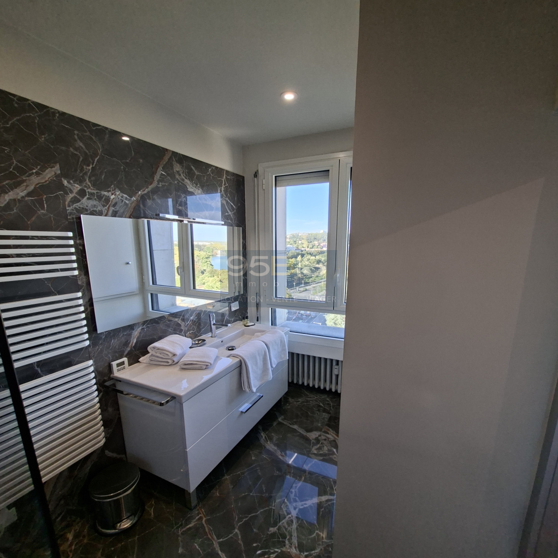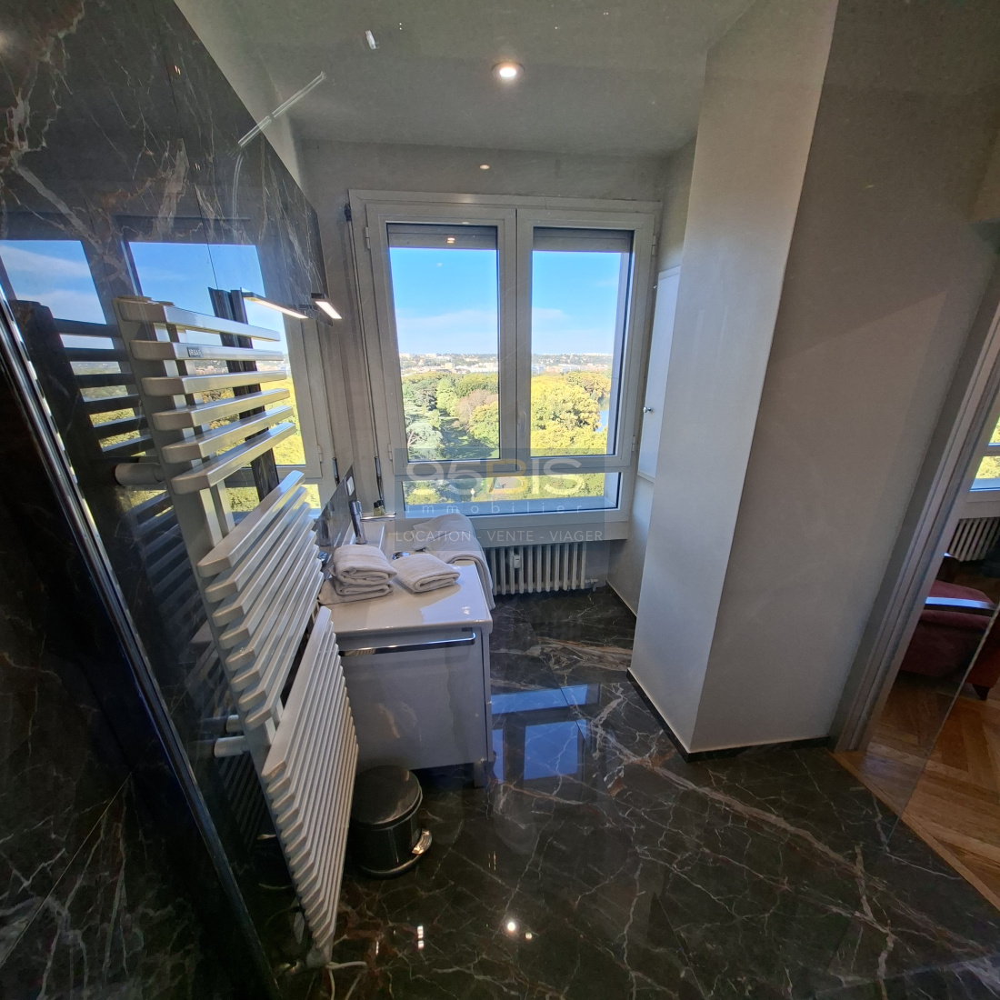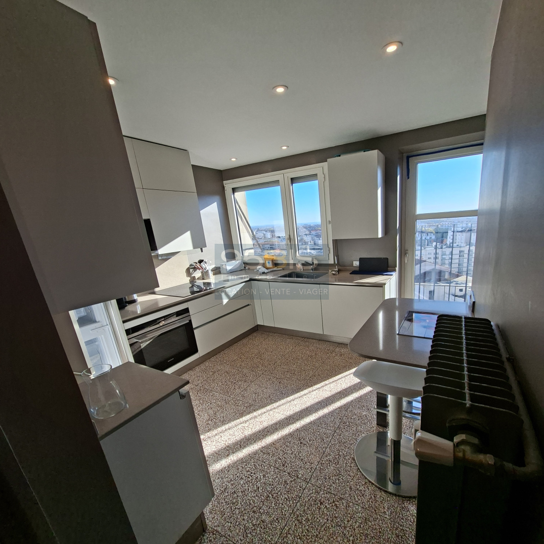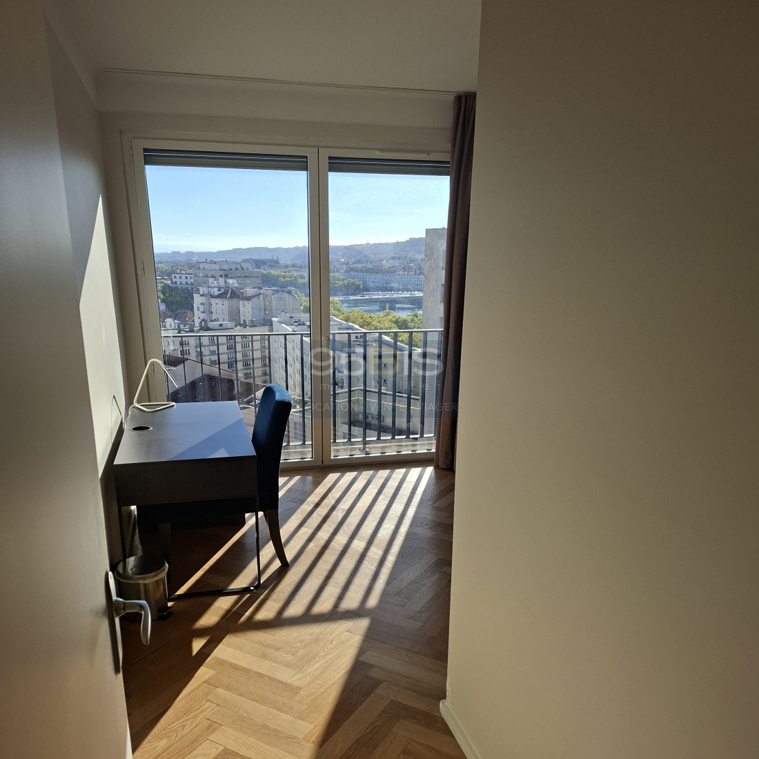 A voir absolument. Vue exceptionnelle, situé face à l'entrée principale du Parc de la Tête d'Or, au 13° et dernier étage, superble T4 entièrement meublé et équipé. Il se compose d'un couloir d'entrée avec placards muraux, d'une cuisine séparée, d'une salle d'eau, d'un grand salon - salle à manger (triple expositions), un cabinet de toilette séparé, trois chambres fermées dont une avec salle d'eau attenante et une avec canapé convertible (couchage quotidien), un garage fermé vient compléter ce bien. Les provisions de charges comprennent l'eau chaude, l'eau froide et le chauffage.